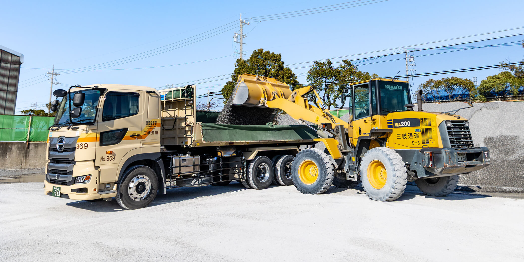 固化材や袋セメントを工事現場・倉庫へ迅速かつ安全に届け、さらに生コン会社への骨材など大規模輸送にも柔軟に対応。
